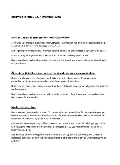 Bestyrelsesmøde 12 November